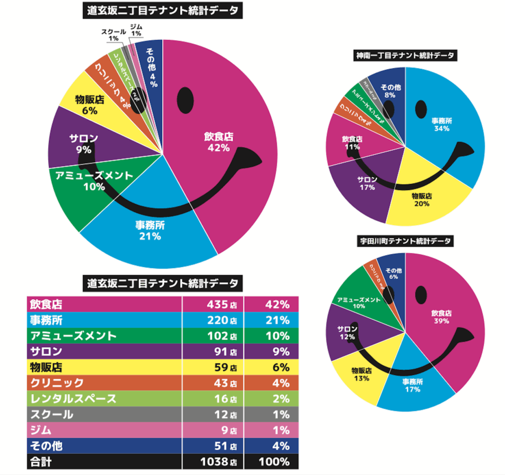 神南一丁目の建物、1038区画のテナントを調査しました。